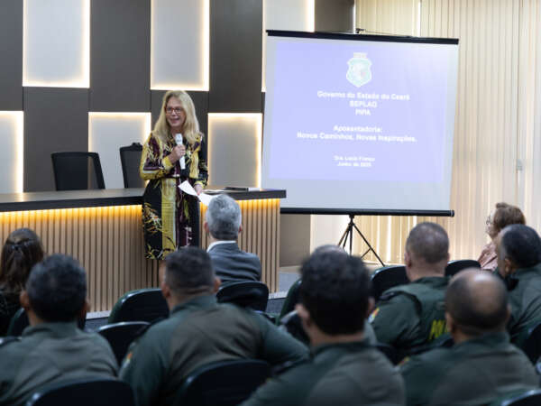 Durante o lançamento do Pipa 2025, a coordenadora da Coordenadoria de Promoção da Qualidade de Vida do Aposentado (Copai) da Seplag-CE, Guirlanda Ponte, apresentou os módulos do Programa, as abordagens que ele possui e a importância dele para os servidores estaduais. “O Pipa foi criado em 2008, pois percebemos que muitos servidores aposentados chegavam ao Programa de Ação Integrada para o Aposentado (PAI) sem nunca terem pensado no que fariam após a aposentadoria. Essa volta para casa é muito difícil, principalmente na área militar. Precisamos pensar sobre essa mudança, organizar a vida financeira e direcionar as nossas ações para que possamos ingressar com tranquilidade na aposentadoria. A Seplag sempre pensa no que podemos fazer para ajudar os servidores estaduais do Ceará. Também por isso, o Pipa possui um tripé que auxilia quem já possui tempo para se aposentar, mas deseja continuar trabalhando; quem pretende empreender após a aposentadoria; e quem pretende voltar ao mercado de trabalho”, explicou.